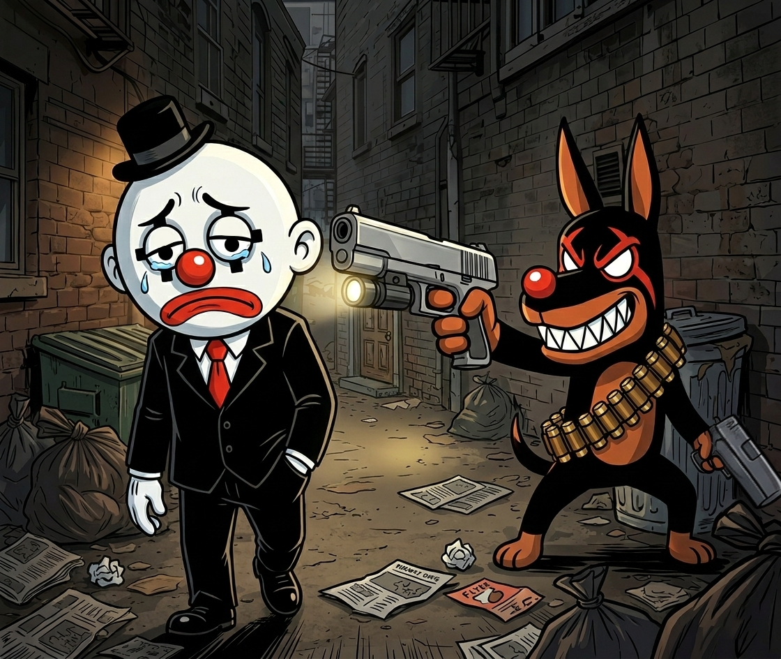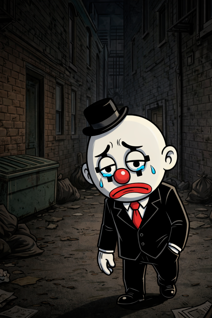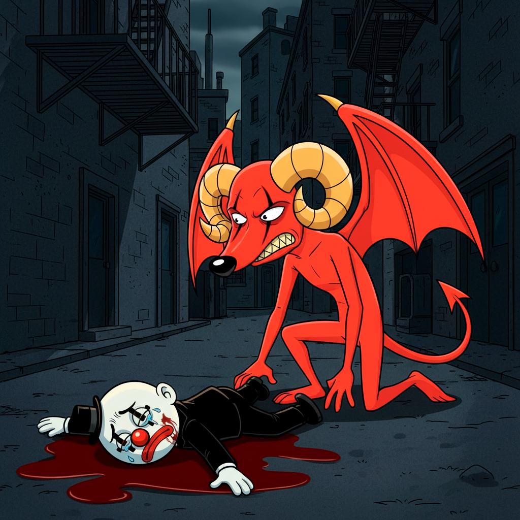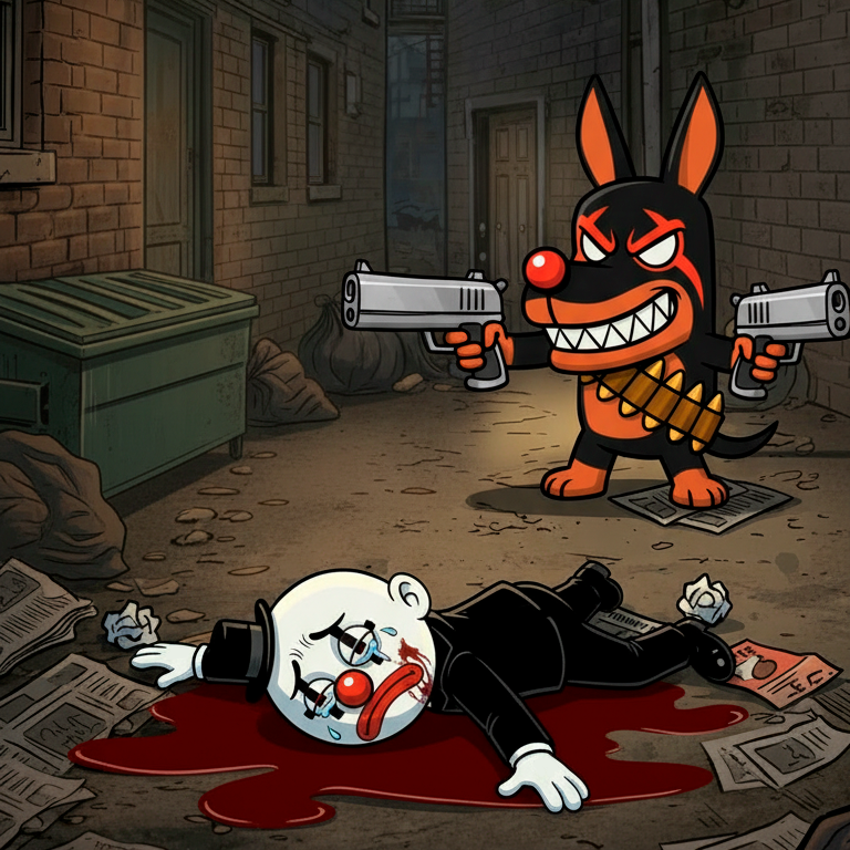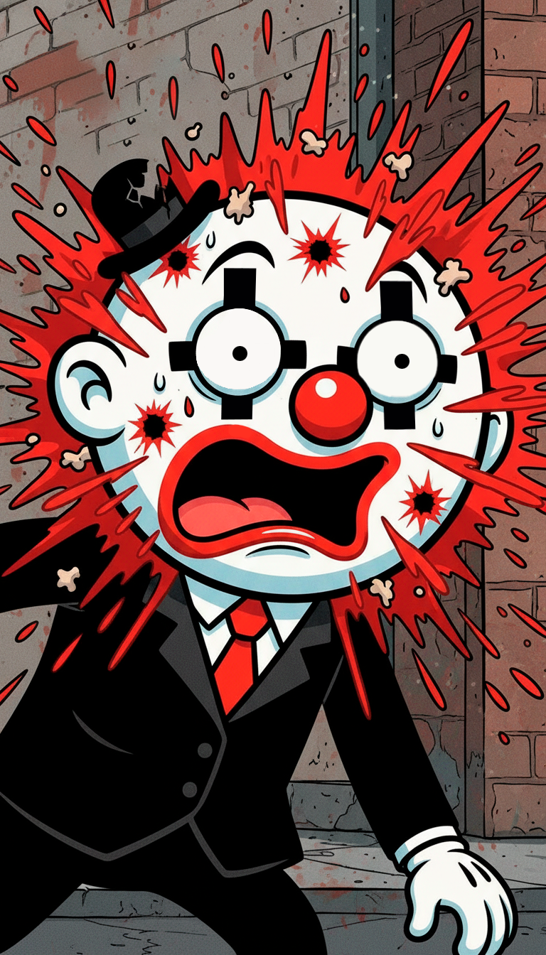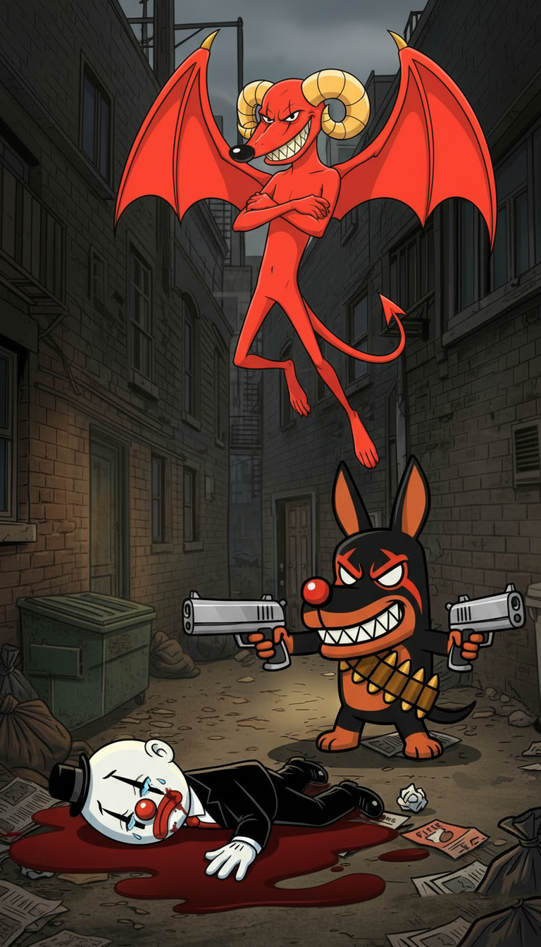 Don Payasito, un mimo fracasado, se cruza —o más bien choca— con D-vil, provocando un accidente que deja a su primera víctima colateral: un pobre Pinscher llamado Pu-Pú.