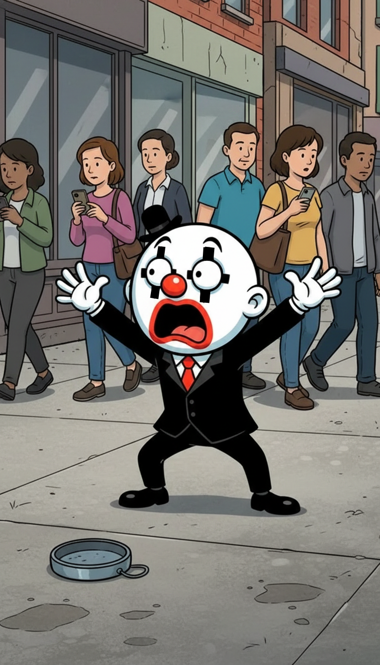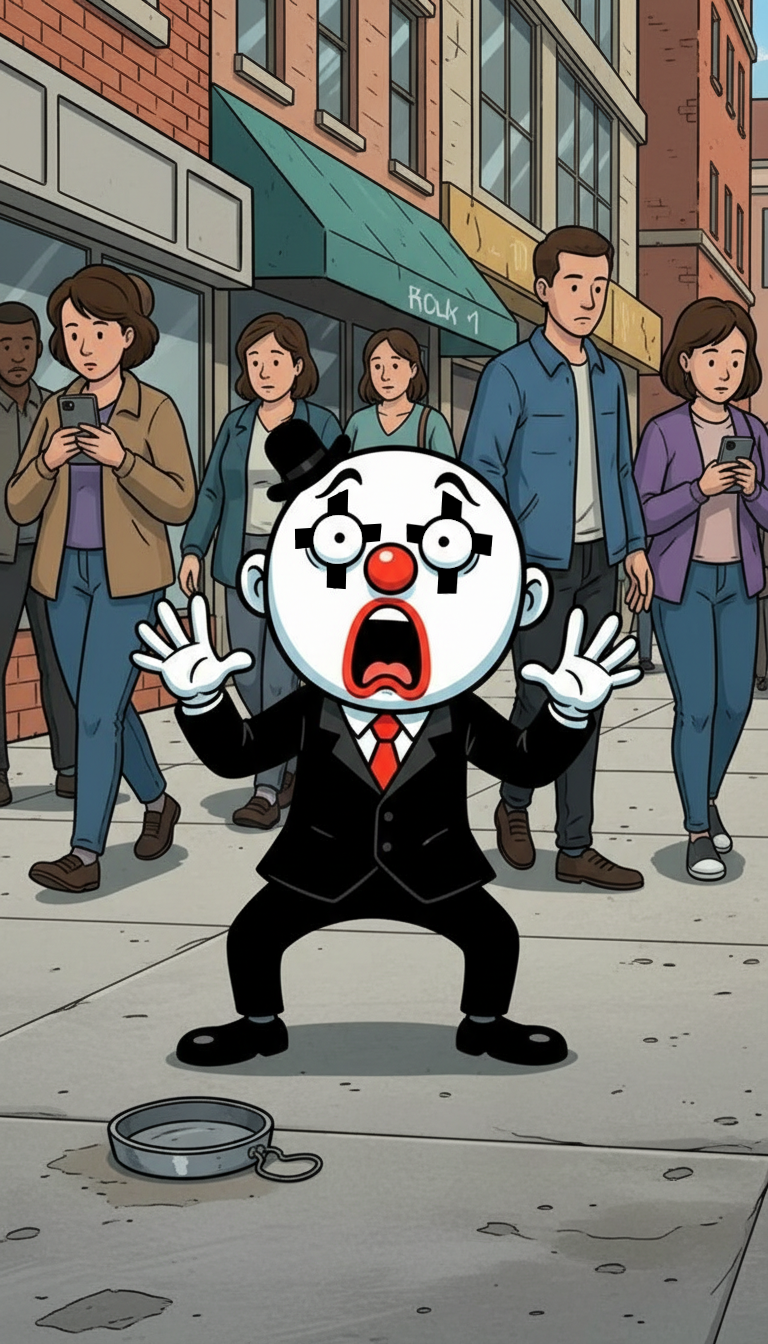A veces el silencio del público no es lo peor que puede pasarle a un mimo.